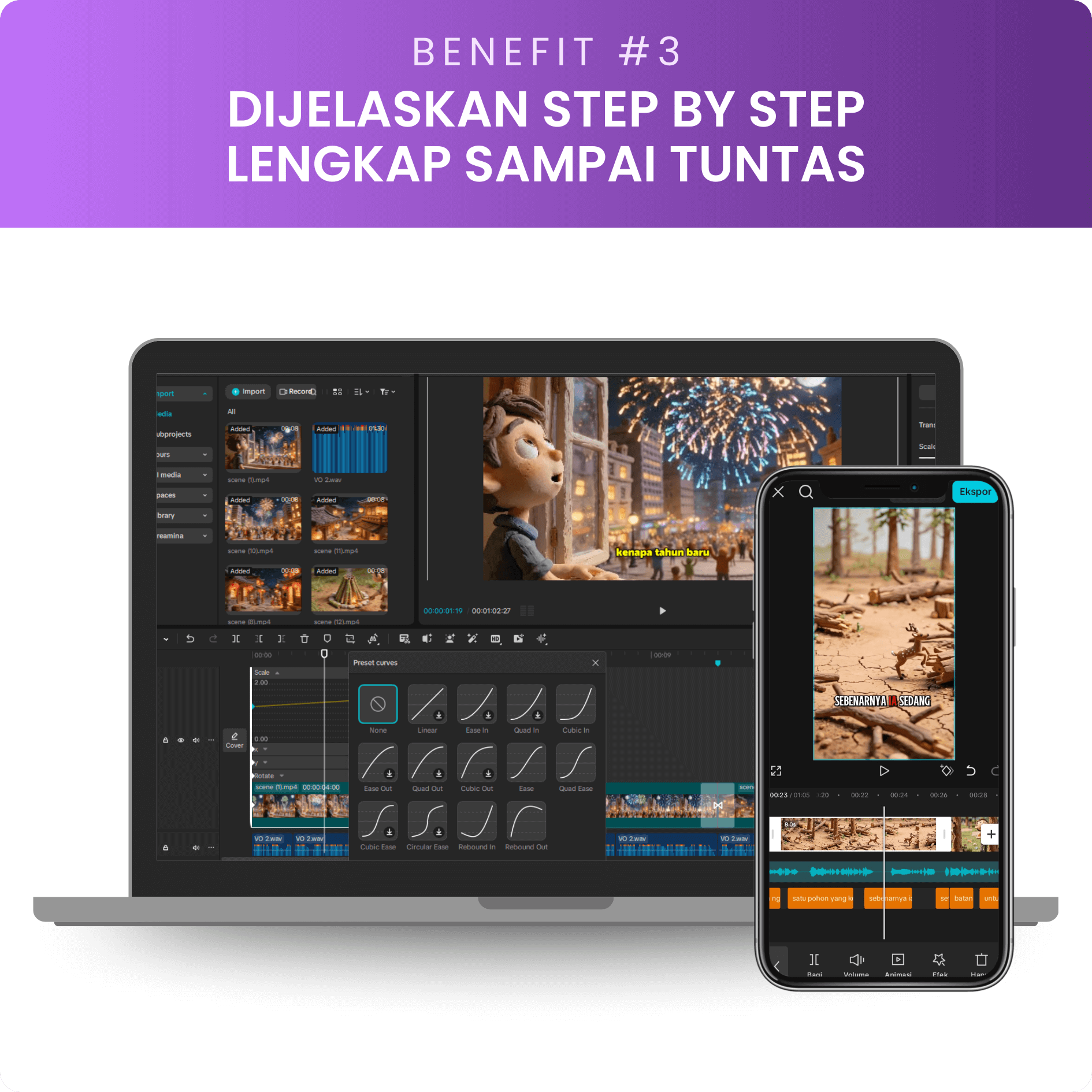 Tenang, kamu gak perlu bingung lagi. Di kursus ini, kamu bakal dapetin panduan lengkap yang ngebimbing kamu step by step dari awal sampai jadi, biar hasil editmu gak kalah sama konten kreator AI profesional.