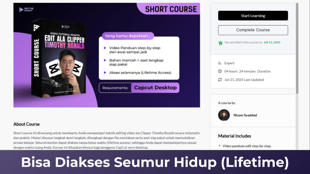 Belajarnya secara online, nanti setelah daftar akan diberikan akses untuk login ke Member Area khusus